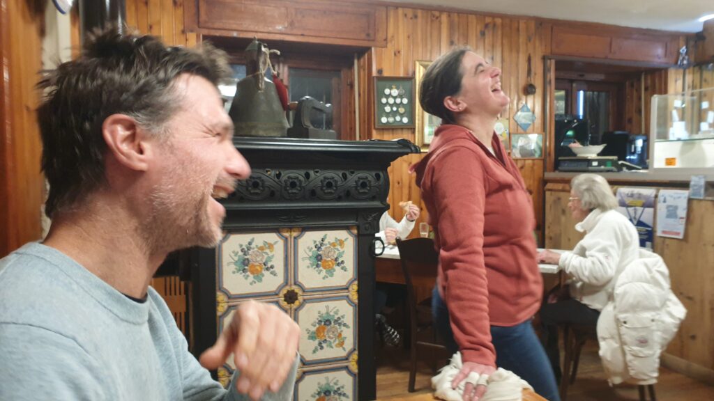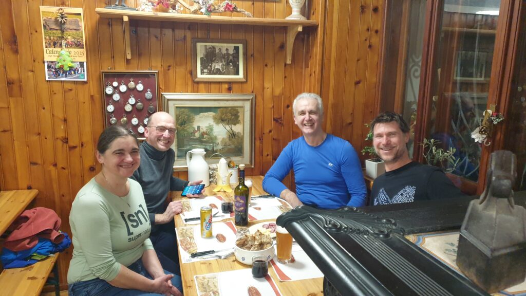 Notre diner sera organisé dans la pizzeria du village de Rovenaud avec une ambiance chaleureuse soutenue par la poile de bois qui nous embarque tard dans la nuit profonde de la montagne.